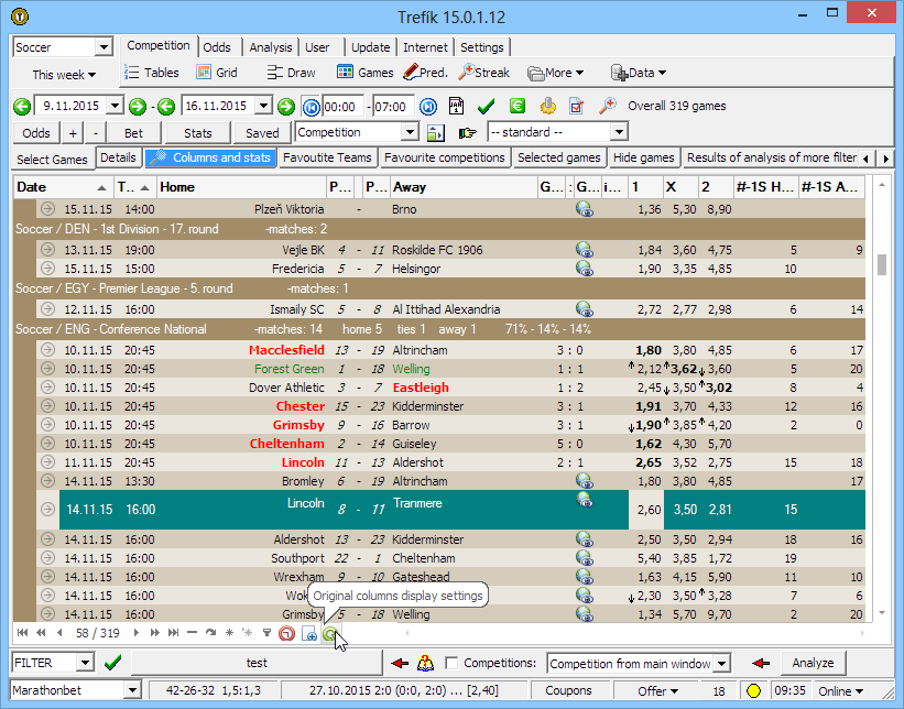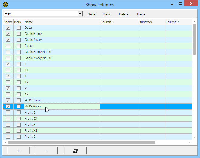 The button EDIT opens the window Filter / Columns. The values "#-1S Home"and "#-1S Away" are accessible. These value are just the ranking data from the previous season: