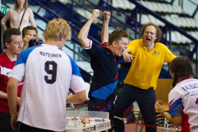 Roni Nuttunen won the first World Table Hockey Tour Big Six Tournament ever played. He beat Kristian Iso-Tryykari at final of Helsinki Open although he lost the first three final games! Bronze medal came to Russia thanks to Ivan Zakharov. 86 players from 7 countries arrived to Helsinki.